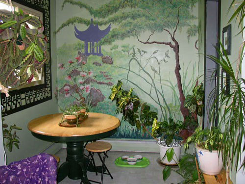 Back when I still thought a dining table should be in a dining room, I begged my artist mom to help me turn that space into a room I would actually use. I had this vague idea of an interpretation of the Sun Yat Sen Garden in Vancouver, BC – one of my favourite garden spaces in the world. Mom took a trip to Sun Yat Sen to make sure she understood what I meant. Together, we did a vague sketch of what it should look like, and Mom set to work.